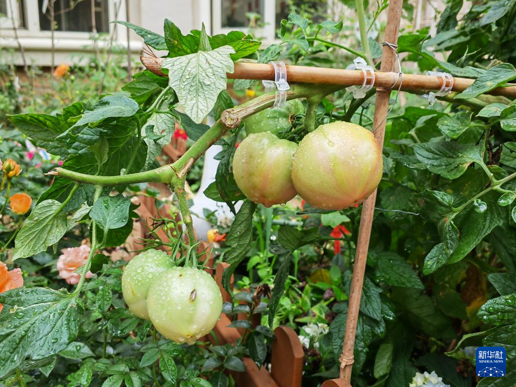大連市甘井子區實驗小學“識嫣園”里種植的西紅柿。新華社記者張博群 攝