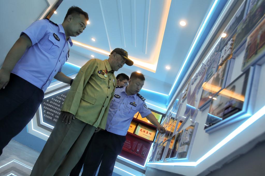 遼寧丹東邊境管理支隊商旅邊境派出所民警向志愿軍老戰士介紹單位的職責使命。(遼寧丹東邊境管理支隊供圖)