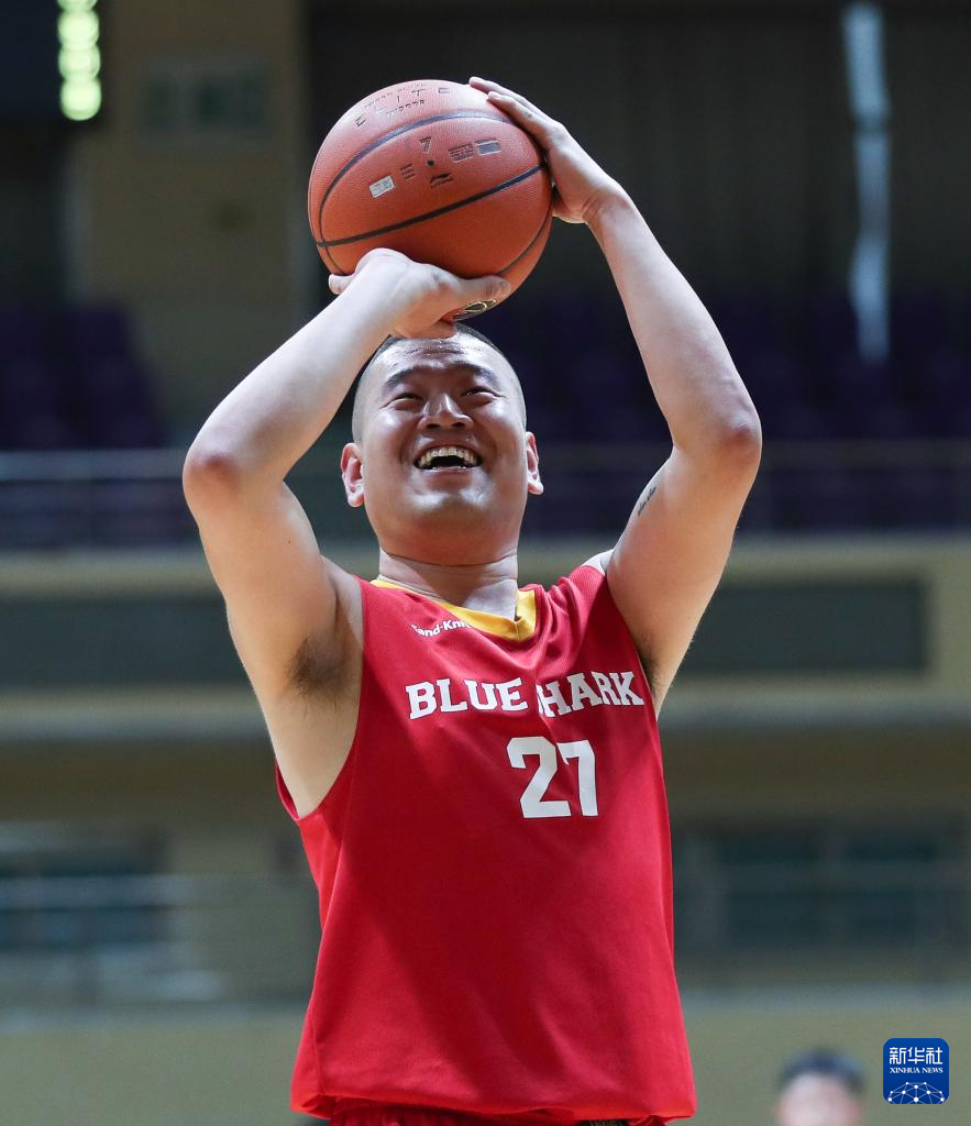 8月8日,藍鯊俱樂部球員周洋在開幕式的籃球表演賽中投籃。新華社記者 龍雷 攝pagebreak