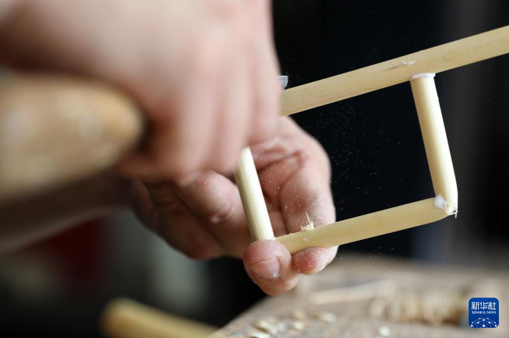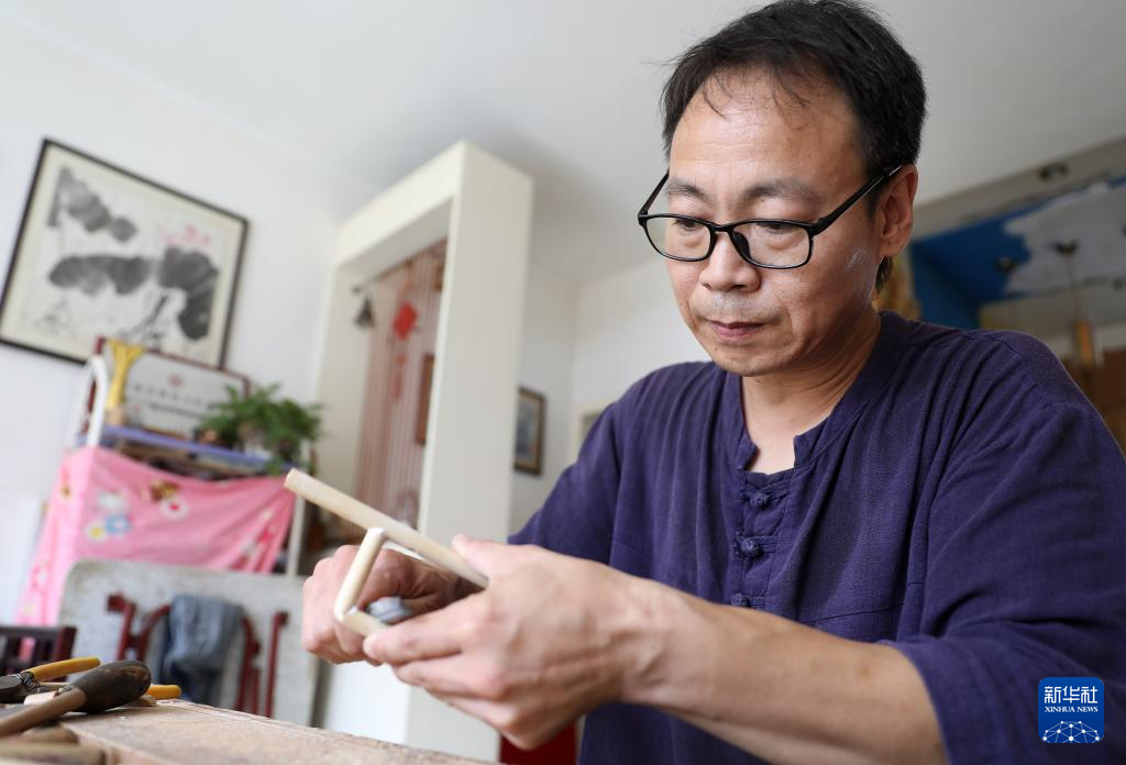 8月17日,崔凱在遼寧省營口市自己家中打磨吉祥輪彩紙風車骨架。新華社記者 姚劍鋒 攝pagebreak