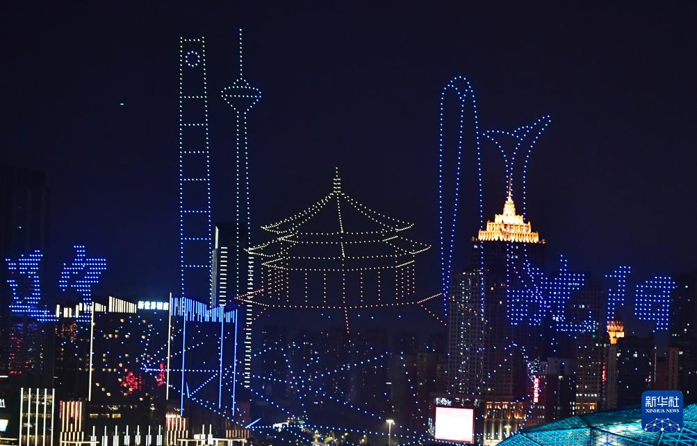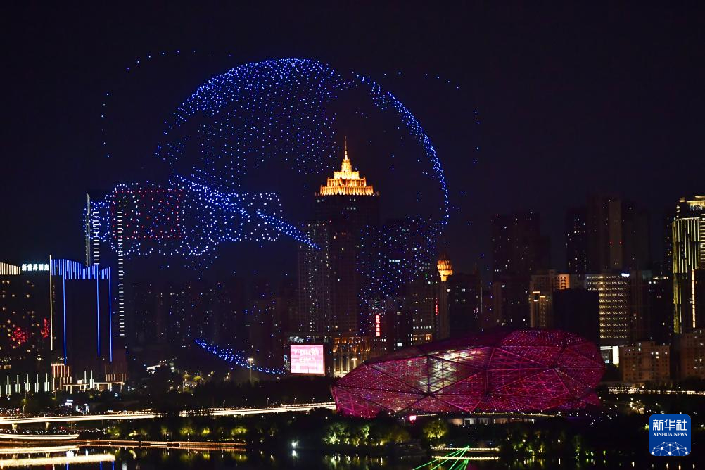 8月17日晚,在沈陽渾河上空區域,2500多架無人機進行矩陣表演,通過矩陣飛行把科技與藝術完美結合,為市民呈現一場閃耀夜空的璀璨光影秀,以動態的立體畫面展示出沈陽在振興發展中的新變化。pagebreak