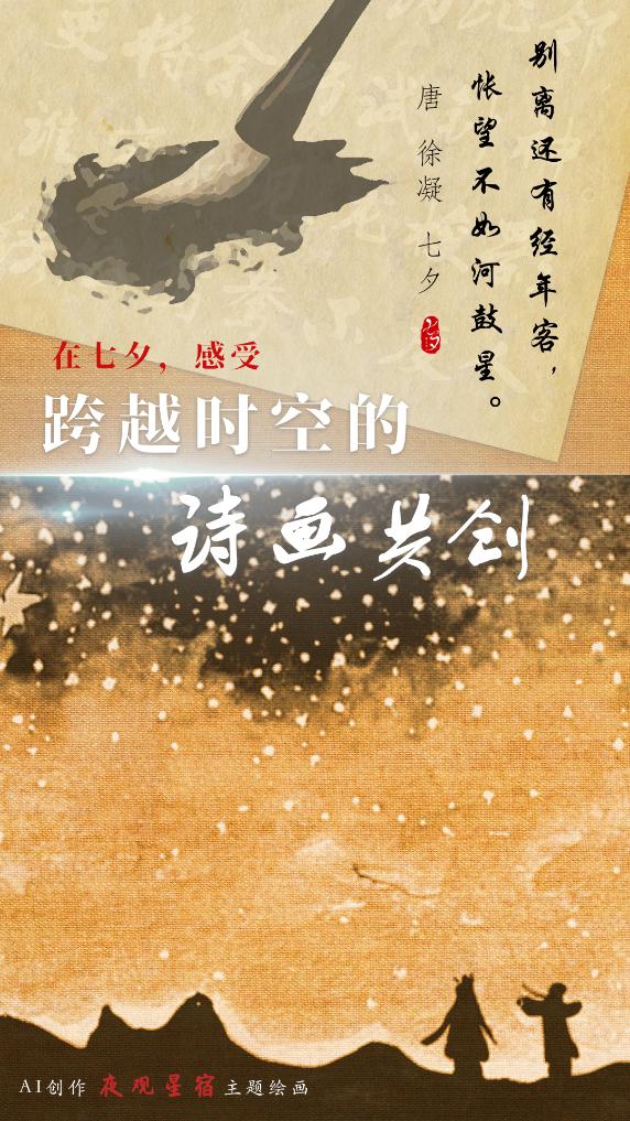 “你題詩、我作畫”是獨屬于中國文人的雅致浪漫。在七夕節,讓我們用 “古人作詩,Ai配圖”“古人作畫,Ai配詩”的方式,奔赴一場跨越時空的“詩畫相逢”。