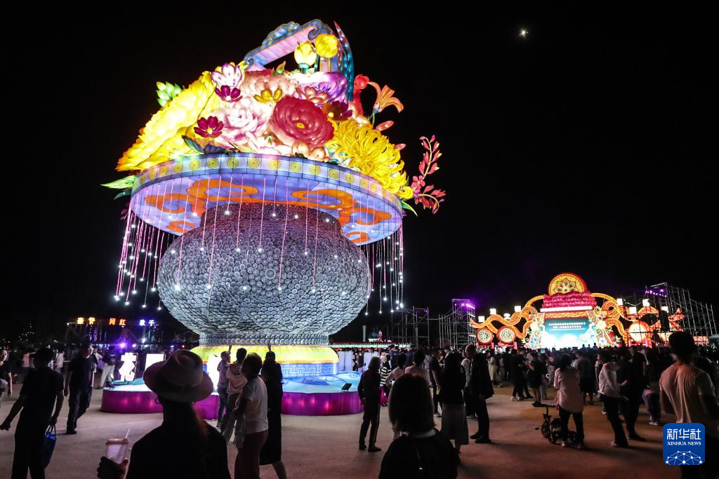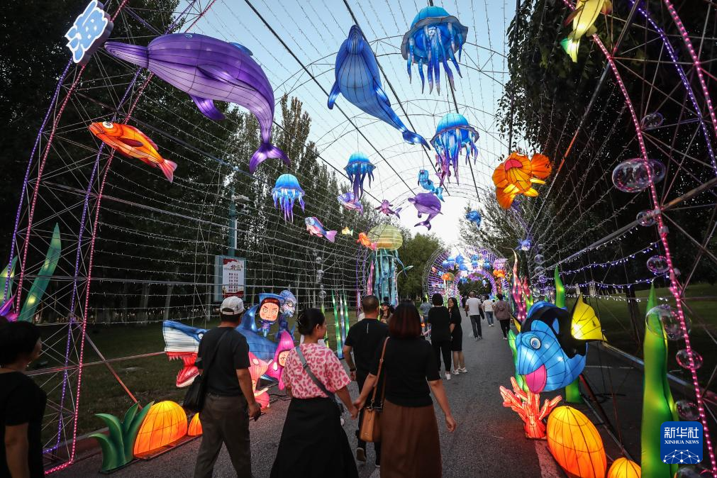 9月1日,游客在燈會上參觀游玩。新華社記者 潘昱龍 攝