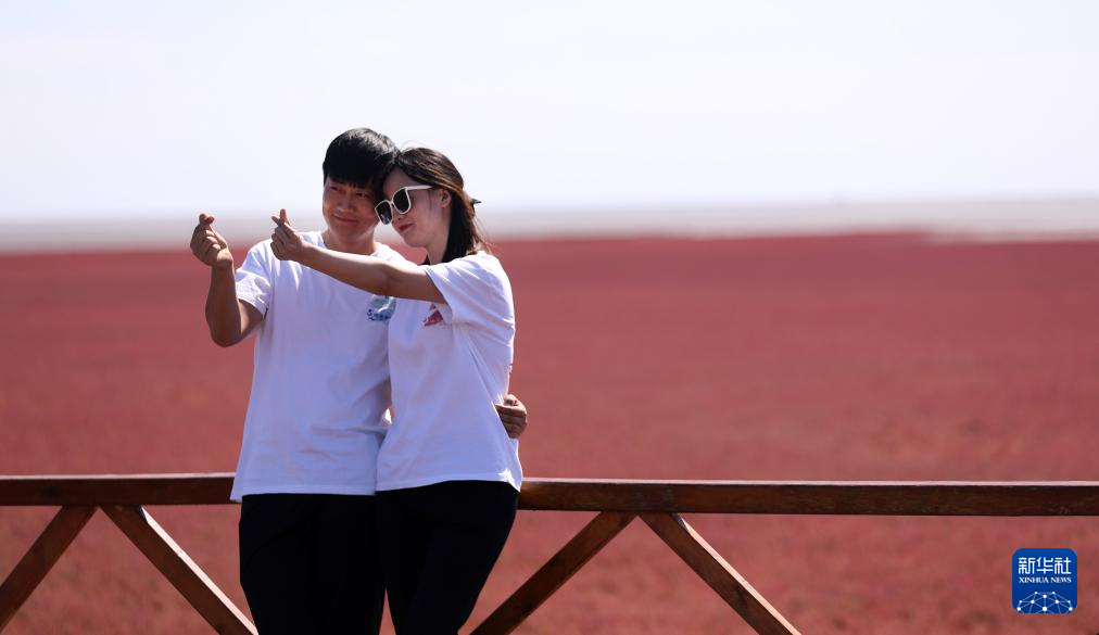 9月12日,游客在盤錦紅海灘國家風景廊道景區留影。新華社記者 姚劍鋒 攝pagebreak