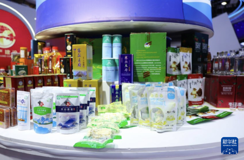 新疆展臺上的地方特色產品。(受訪者供圖)