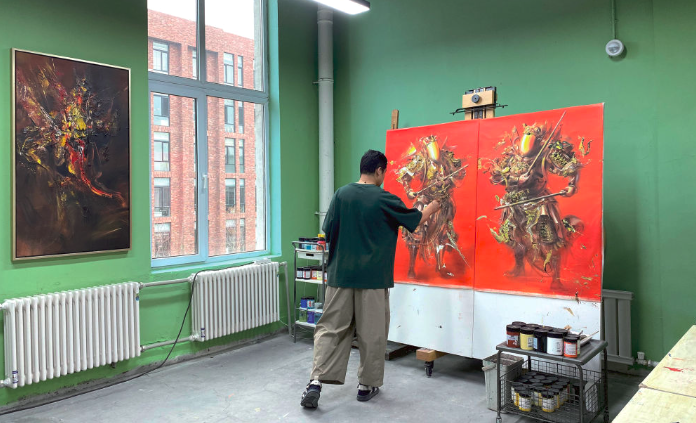 紅梅文創園老廠房中,畫家鄧宇參與紅梅文創園藝術駐地計劃進行駐地創作(受訪者供圖)