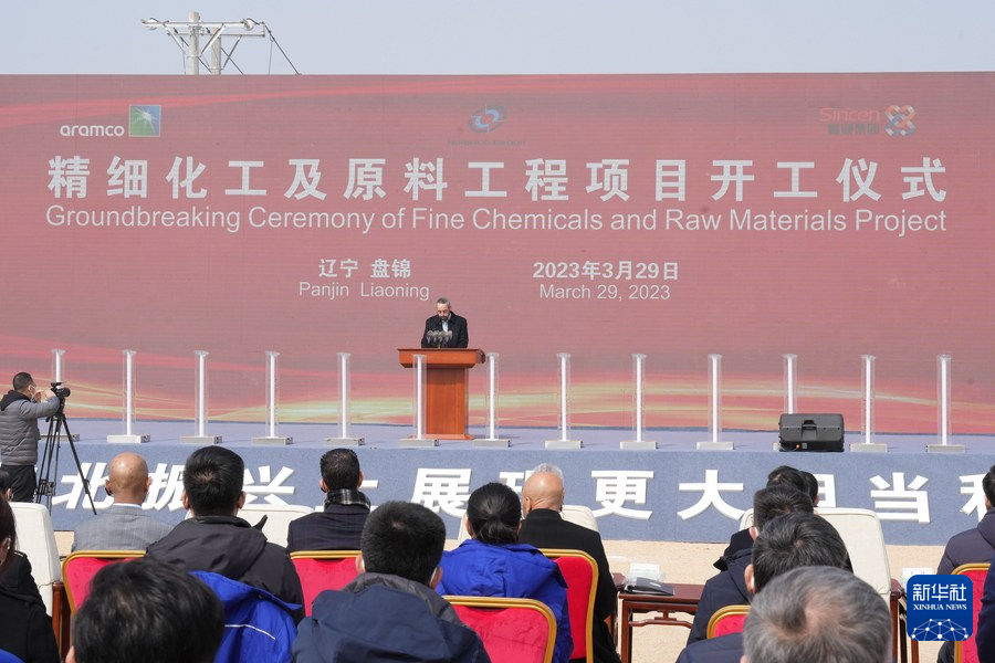 2023年3月29日,中沙共同推動的重大能源合作項目華錦阿美在遼寧盤錦開工。新華社記者 潘昱龍 攝