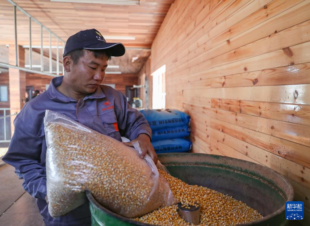 10月19日,工作人員為信鴿加工飼料。新華社記者 龍雷 攝pagebreak