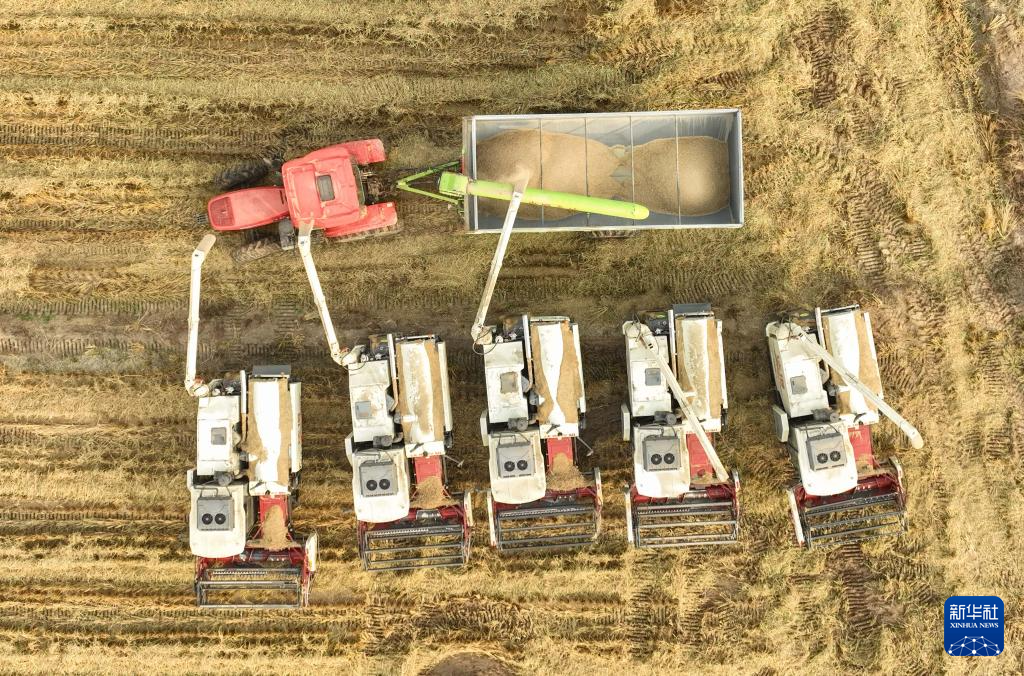 金秋時節,遼寧省阜新市彰武縣大冷鎮上三家子村的稻田里機聲隆隆,一片豐收的繁忙景象。