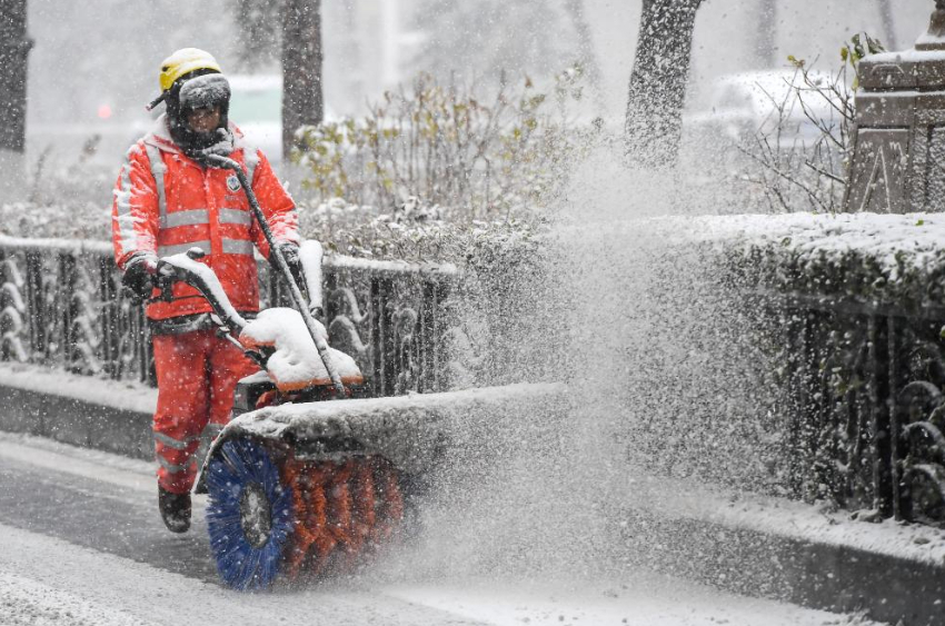 6日,在長春市人民大街,環衛工人操作清雪機清理路面積雪。新華社記者張楠 攝