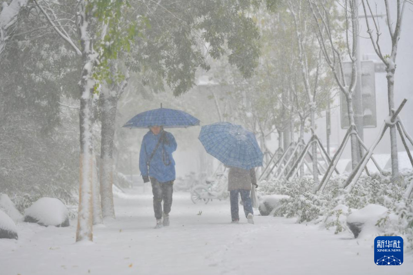 11月6日,在沈陽市渾南區,行人在雪中出行。 新華社記者楊青攝