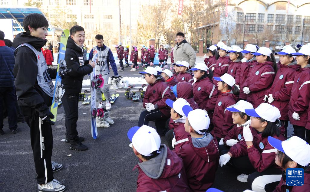 滑雪教學體驗活動中,教練員為學生講解滑雪基本知識。劉藝淳攝