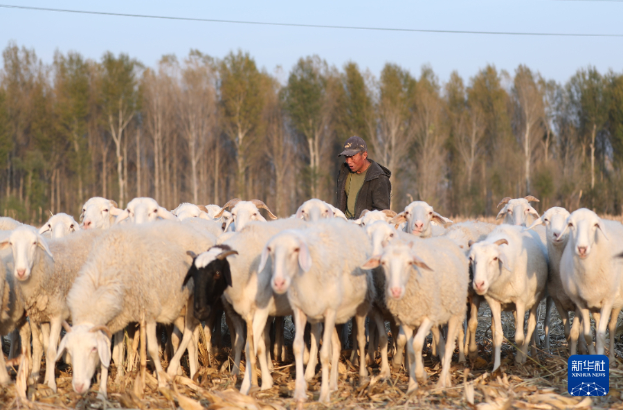 10月17日,官營子村村民在村中放羊。新華社記者龍雷攝