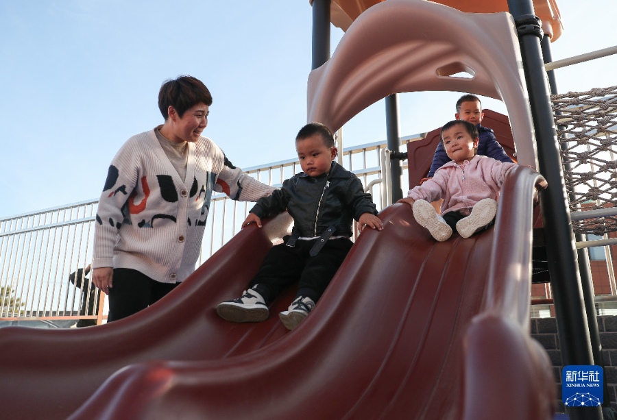 10月31日,小朋友在官營子村幼兒園玩滑梯。新華社記者龍雷攝pagebreak