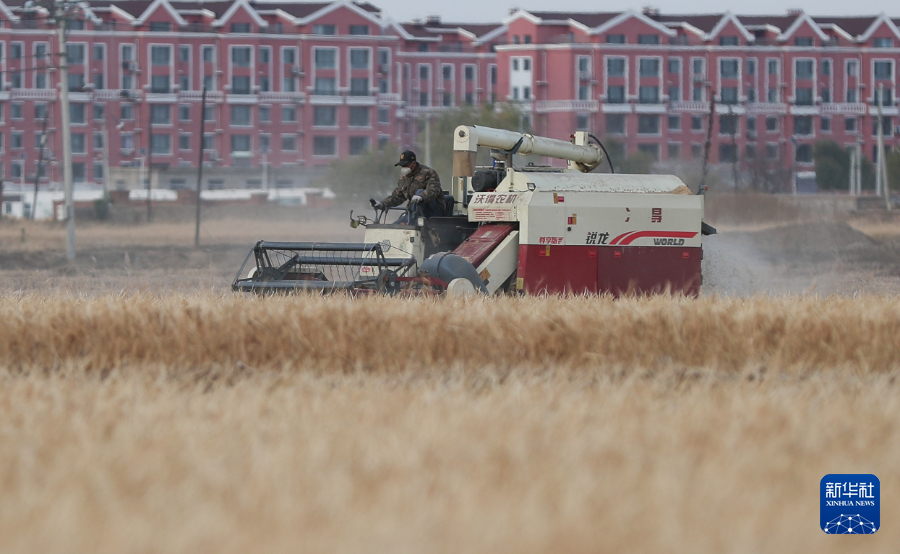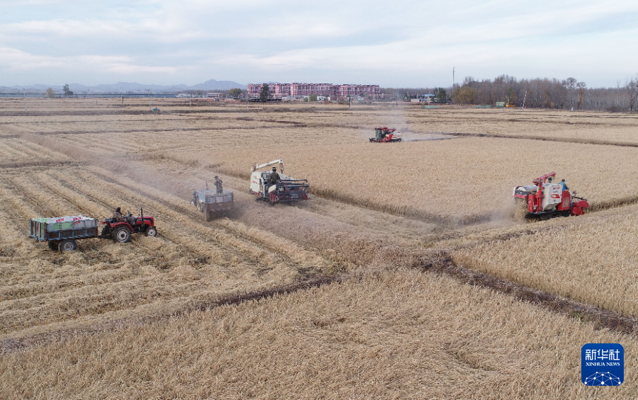 10月31日,水稻收割機在官營子村的稻田中作業。新華社記者龍雷攝pagebreak