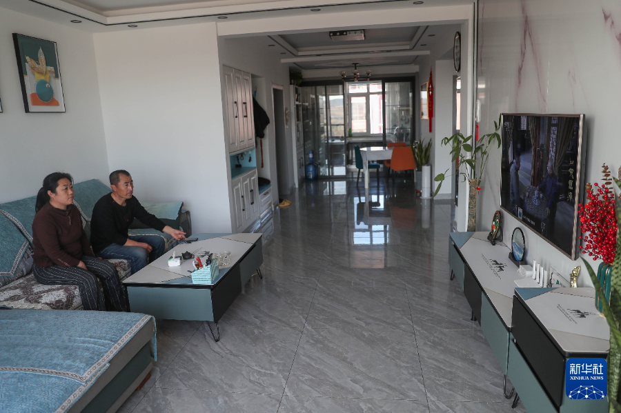 10月31日,官營子村村民在家中看電視。新華社記者龍雷攝pagebreak
