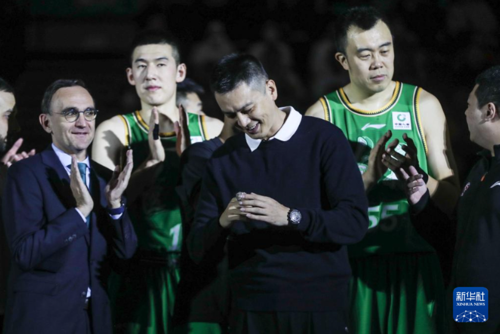 11月15日,前遼寧本鋼隊主教練楊鳴(中)在賽前領取冠軍戒指。新華社記者 潘昱龍 攝pagebreak