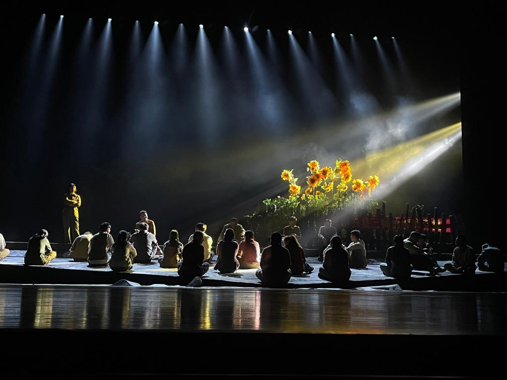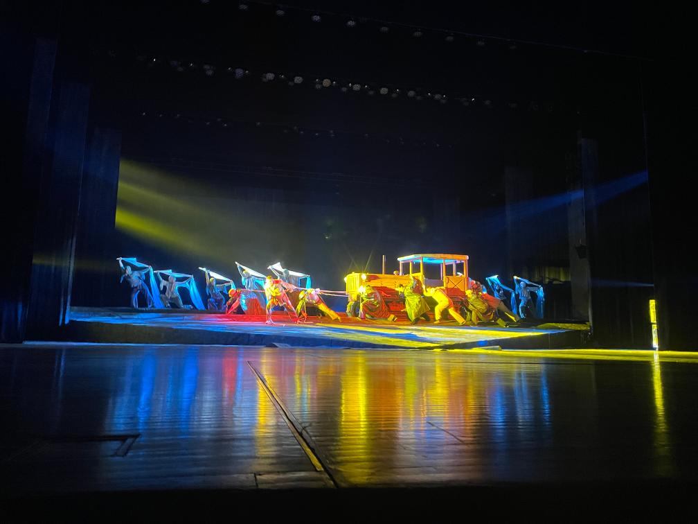 “民以食為天!糧食就是天!天!天!天!”姚居德說著,高高舉起雙手,抬頭仰望,動情地說著這段臺詞,其他演員看向他,目光里飽含著投身國家建設的迫切期待……每一句臺詞,每一個眼神都精心打磨,全情投入讓排練變成了一場正式的演出。
