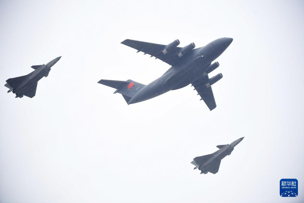11月23日,空軍殲-20飛機為護送烈士遺骸回國的運-20專機護航。新華社發(黃燦 攝)pagebreak