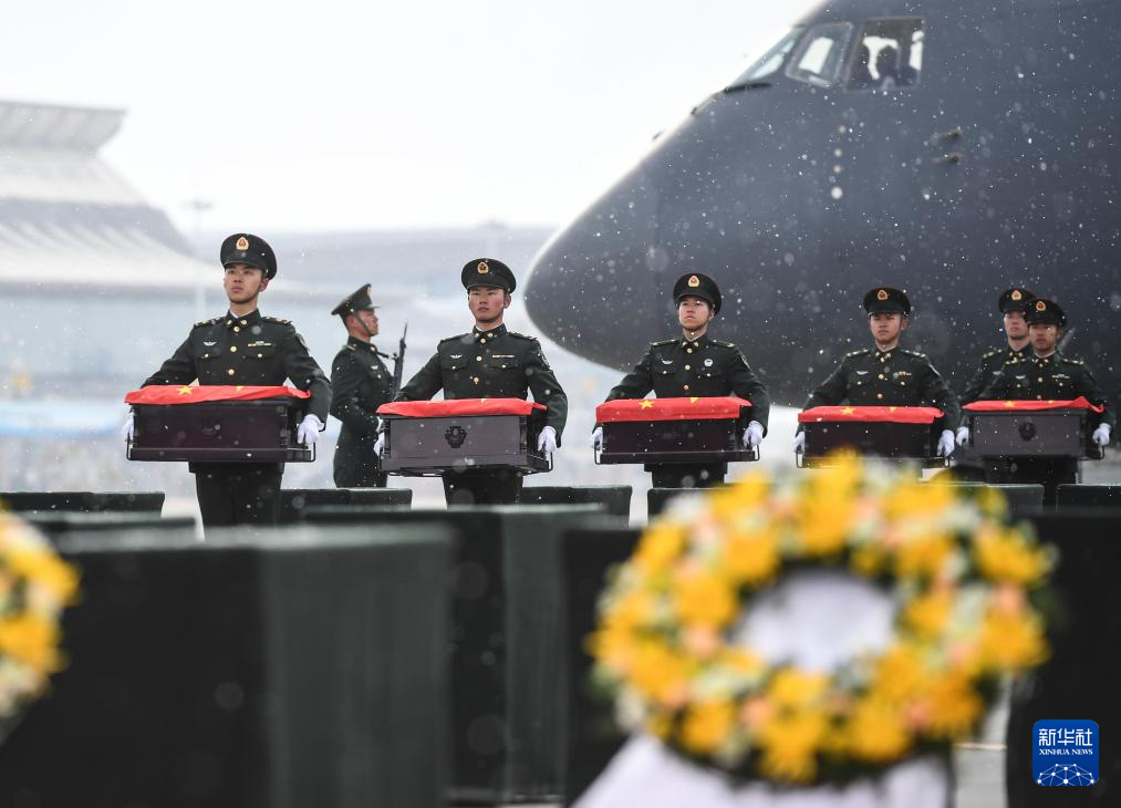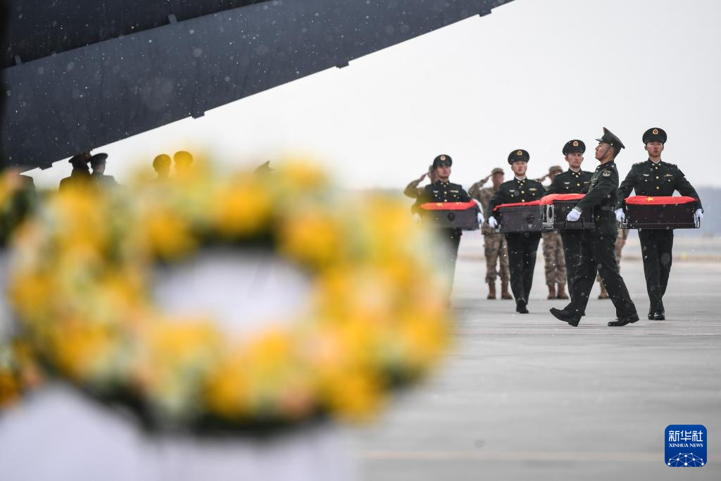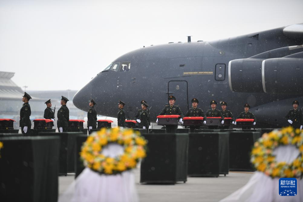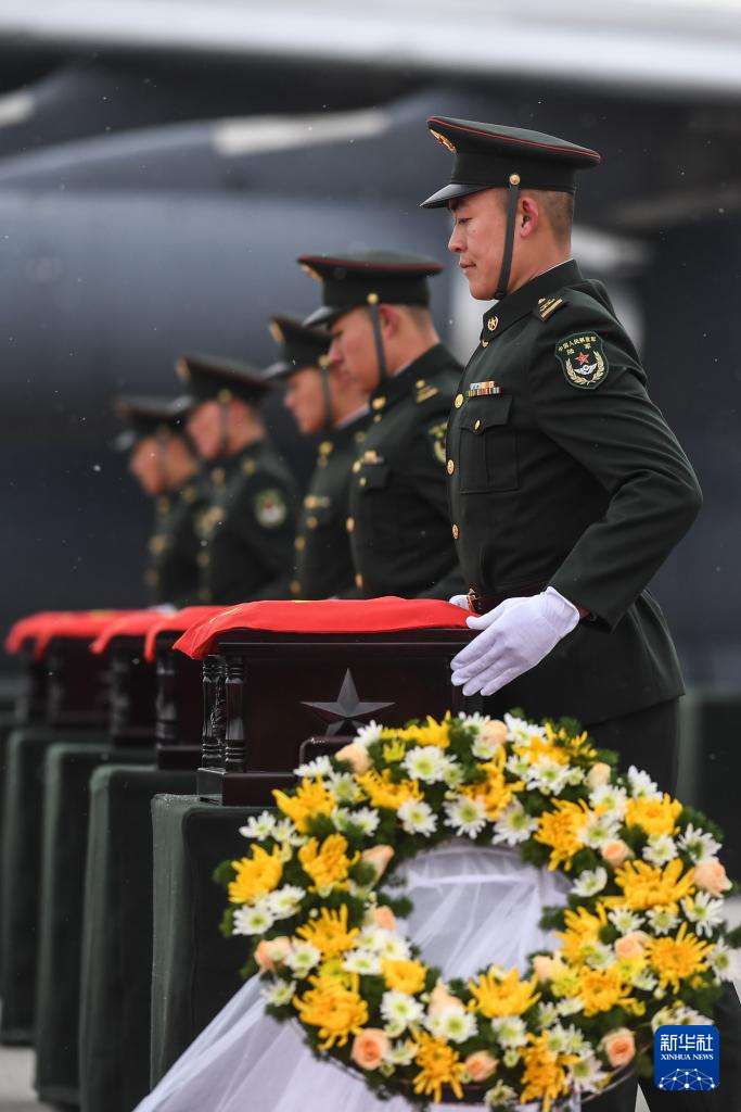 當日,第十批在韓中國人民志愿軍烈士遺骸由我空軍專機護送從韓國接回遼寧沈陽,25位志愿軍烈士遺骸及相關遺物回到祖國。pagebreak