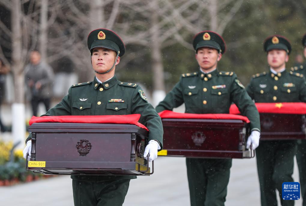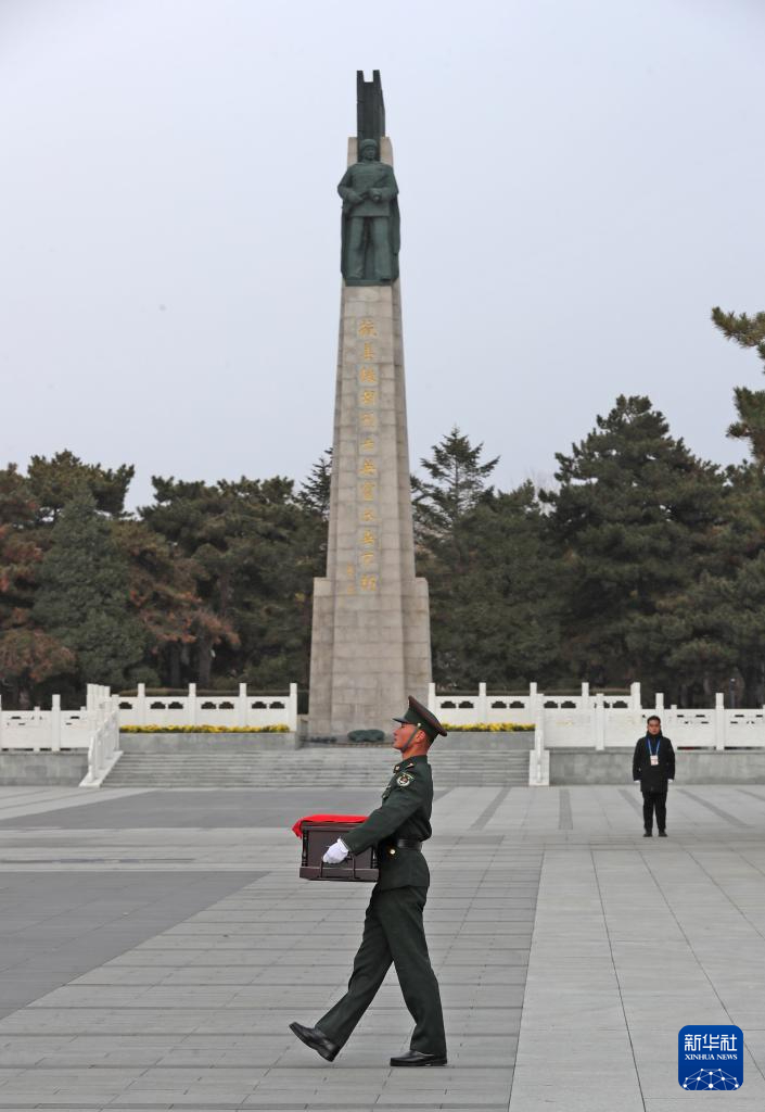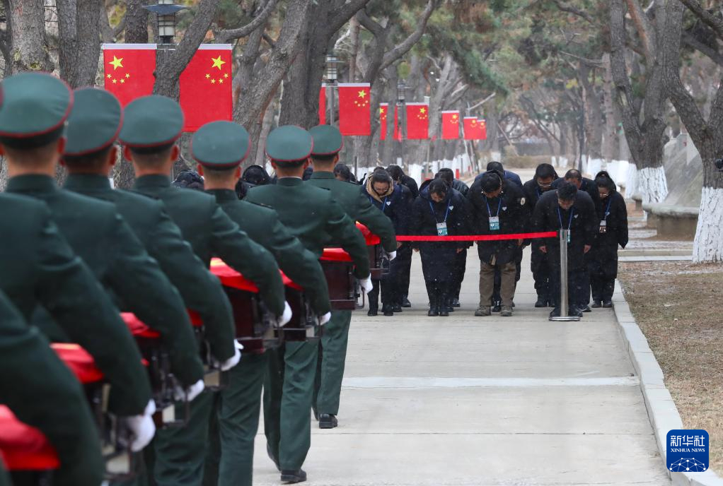 11月23日,志愿軍烈士遺骸抵達沈陽抗美援朝烈士陵園。新華社記者 楊青 攝pagebreak