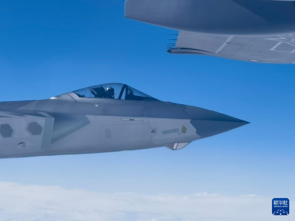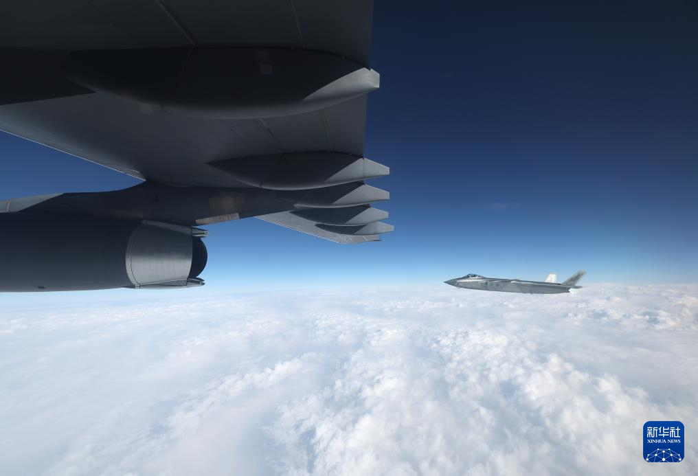 11月23日,空軍兩架殲-20飛機為護送烈士遺骸回國的運-20專機護航。新華社記者 潘昱龍 攝