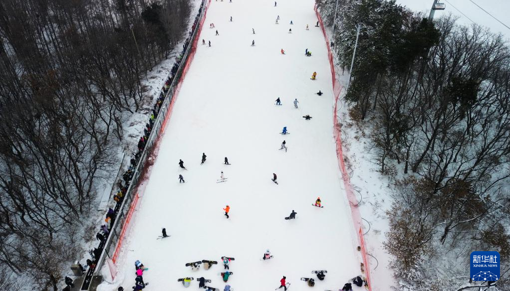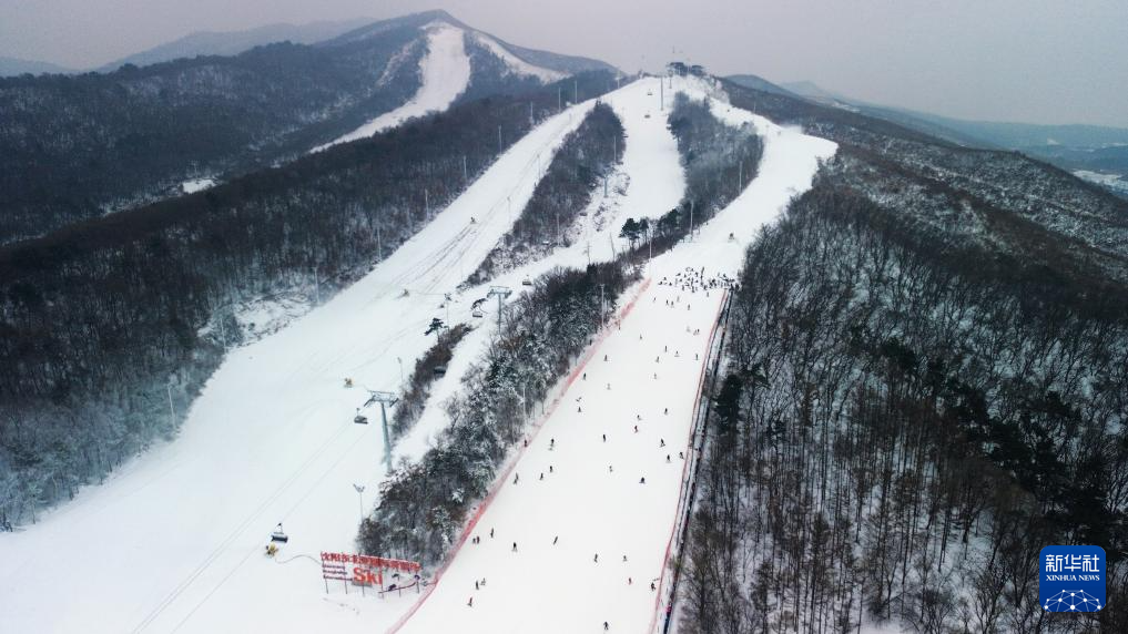 11月26日,滑雪愛好者在沈陽市東北亞滑雪場滑雪(無人機照片)。新華社記者 陳為 攝