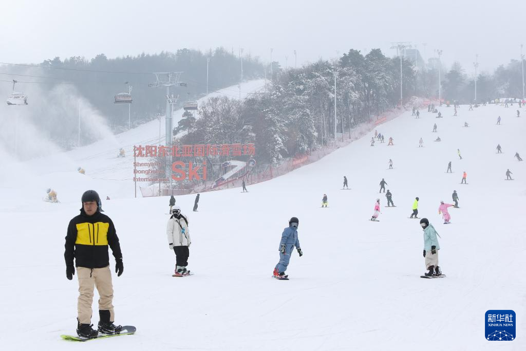 11月26日,滑雪愛好者在沈陽市東北亞滑雪場滑雪。新華社記者 陳為 攝