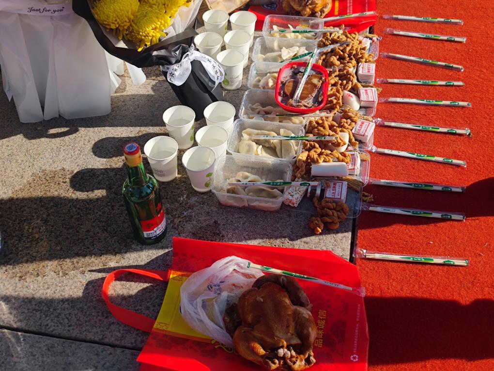 圖為群眾自發擺放的祭掃用酒食果品。受訪單位供圖
