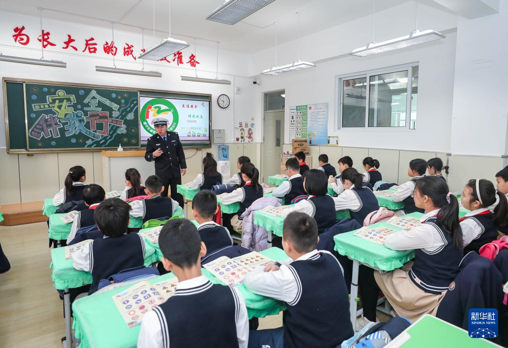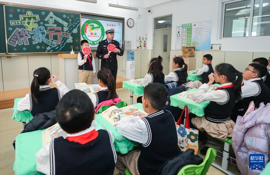 12月1日,沈陽市公安局交通警察局皇姑大隊交警萬林在沈陽市皇姑區童暉小學為同學們講解交通安全相關知識。新華社記者 龍雷攝