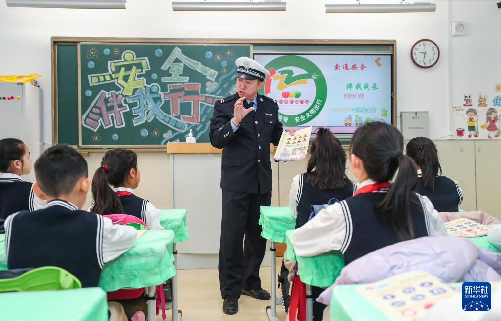 當日,沈陽市皇姑區童暉小學舉行交通安全專題教育活動,沈陽市公安局交通警察局皇姑大隊交警萬林來到學校為同學們講解交通安全相關知識,幫助學生樹立交通安全意識,養成安全出行、文明出行好習慣。