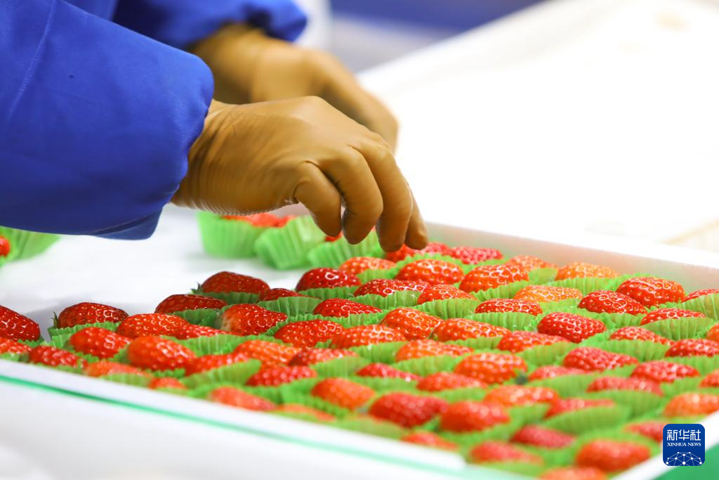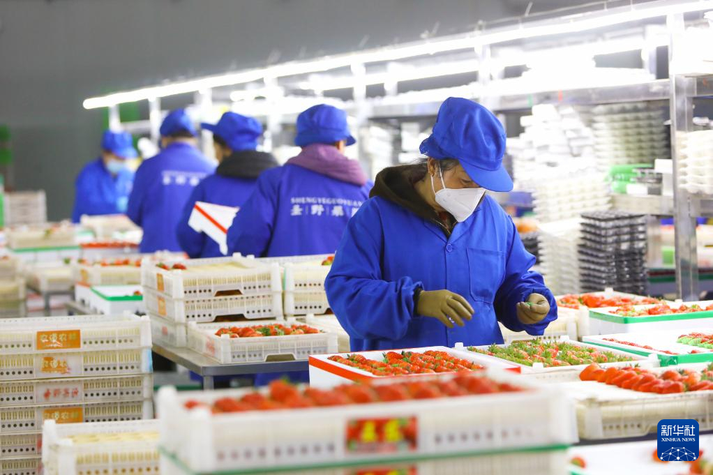12月7日,丹東市圣野漿果專業合作社的工作人員打包剛剛采摘的草莓。新華社記者 陳為 攝pagebreak