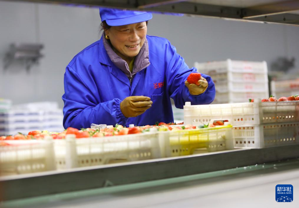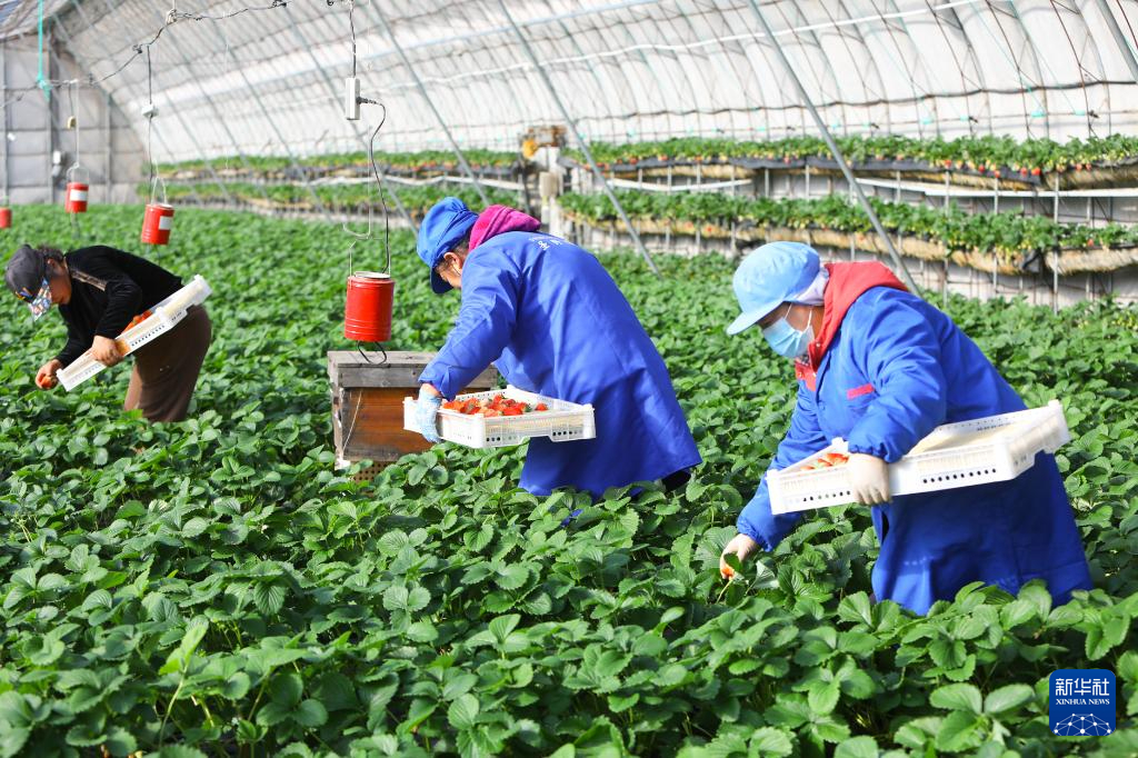 12月7日,在丹東市圣野漿果專業合作社的大棚內,工作人員采摘草莓。新華社記者 陳為 攝