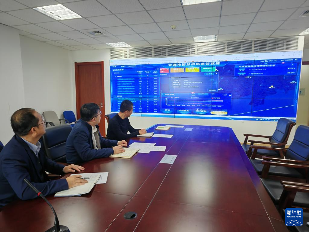 12月19日,大連市住建局供熱專班工作人員在查看智慧供熱監管系統實時數據。新華社記者 郭翔 攝