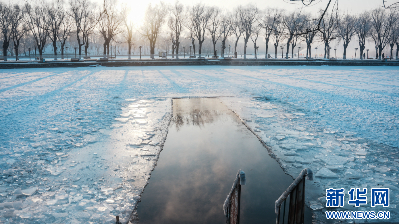 圖為沈陽北陵公園冬泳愛好者開鑿出來的泳道。 新華網許志康攝