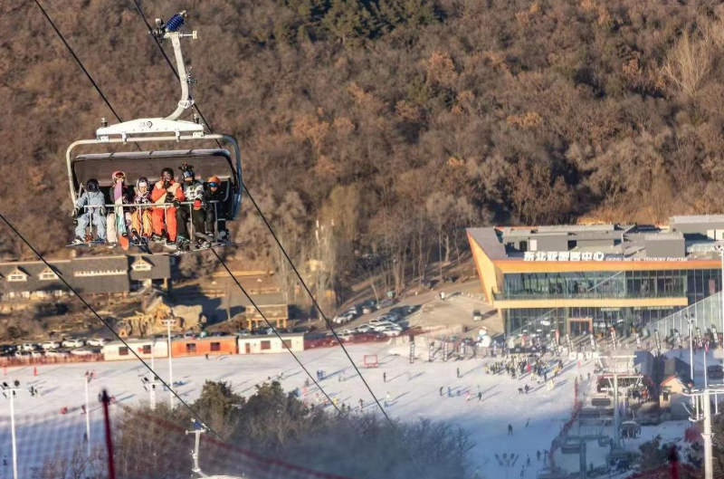 在吉林省萬峰通化滑雪度假區,滑雪愛好者們有序在纜車前排隊,拿上雪板準備在雪道上飛馳暢滑?!扒皫啄甓际侨ブ苓吅褪⊥獾幕﹫?,現在終于實現在家門口‘泡’雪場的夢想了?!蓖ɑ酆谜咄跣駝傉f。