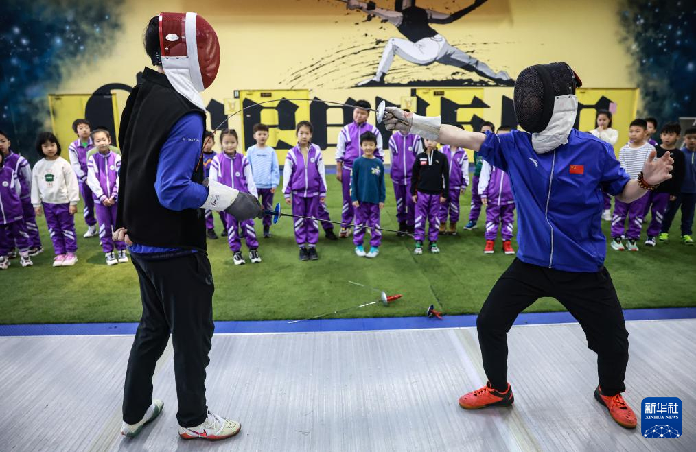 1月15日,教練向學生們示范擊劍。新華社記者 楊青 攝pagebreak