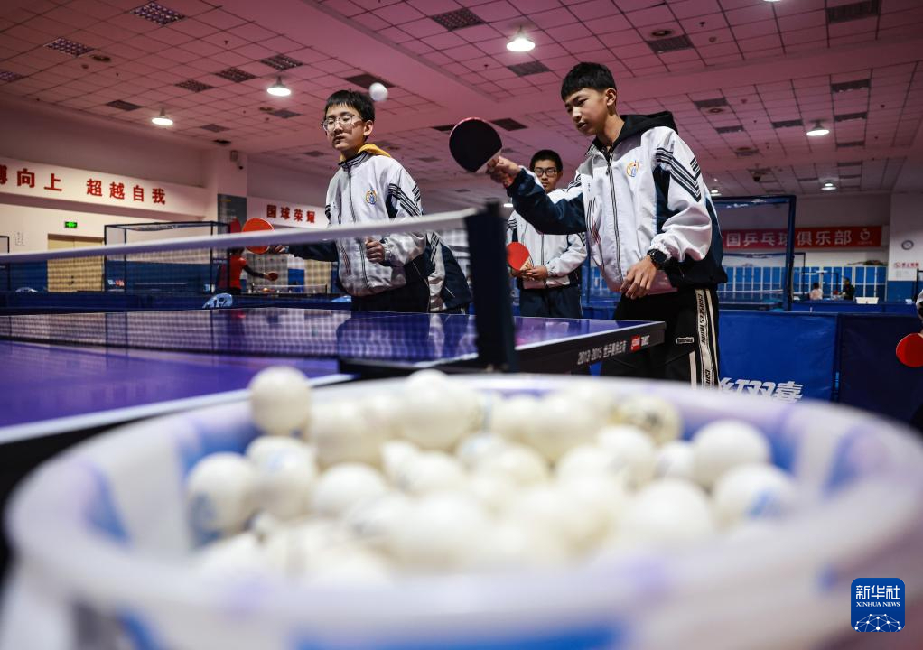 1月15日,學生們練習乒乓球。新華社記者 楊青 攝pagebreak