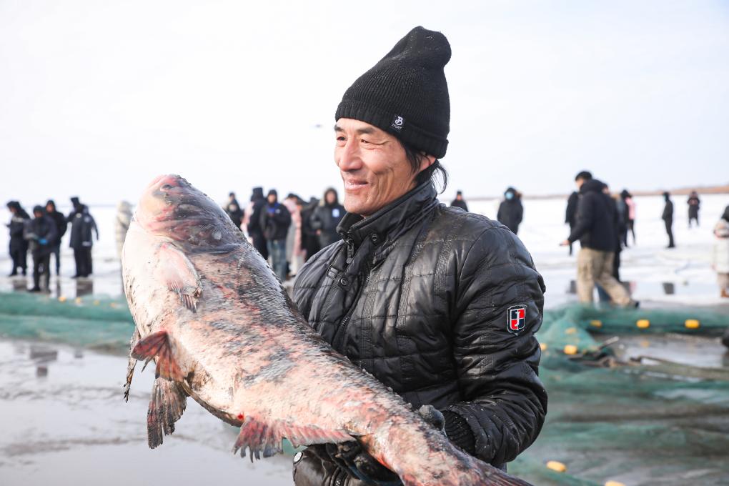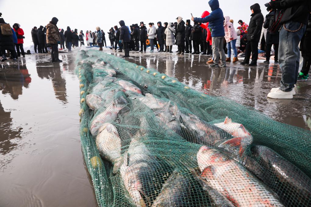 新華網沈陽2月2日電(記者于也童)一望無際的臥龍湖冰面上,伴隨著“魚把頭”的陣陣號子聲,一大網活蹦亂跳的大魚從冰水里被撈出,躍動翻騰……2024年第九屆沈陽臥龍湖大遼文化冬捕節上,“冰湖騰魚”的精彩一幕,讓前來參觀的游客流連忘返。