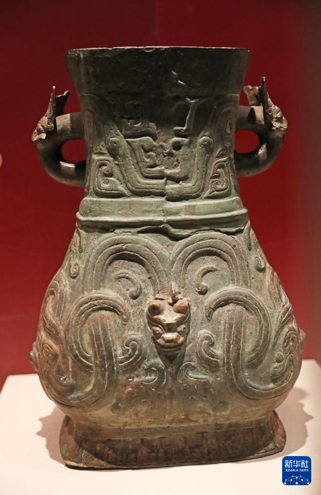 2月2日在遼寧省博物館拍攝的龍紋方壺。新華社記者 楊青 攝pagebreak