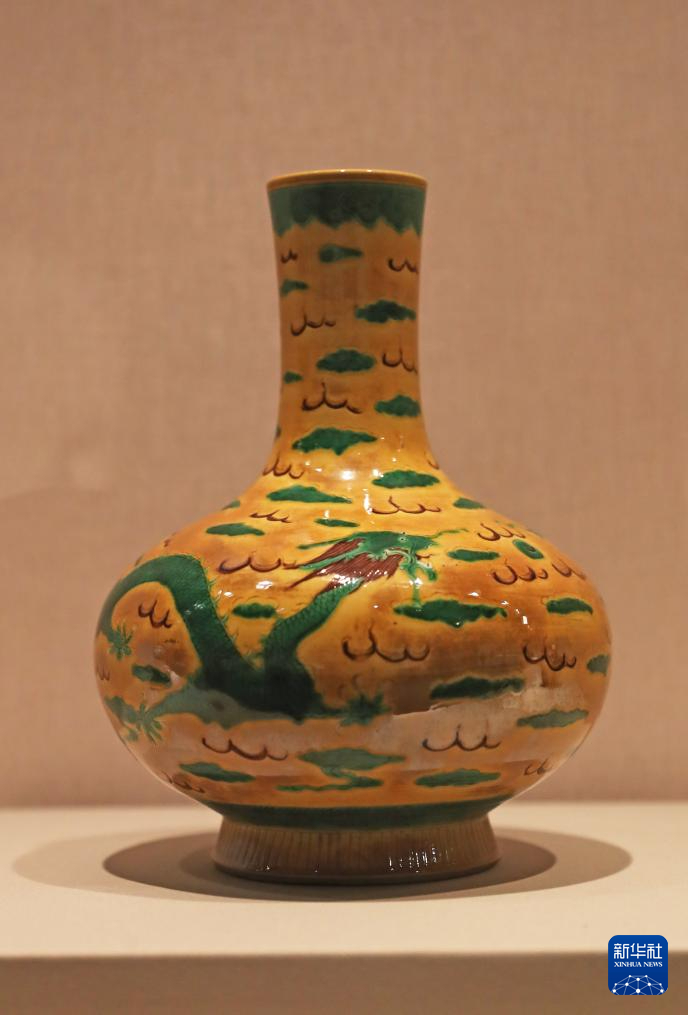 2月2日在遼寧省博物館拍攝的黃地素三彩云龍紋尊。新華社記者 楊青 攝pagebreak