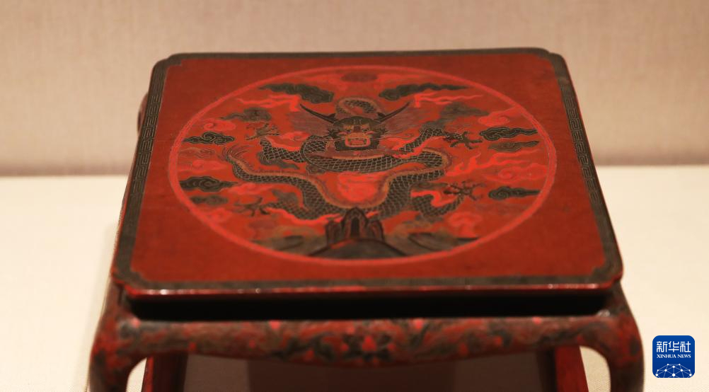 2月2日在遼寧省博物館拍攝的平涂朱漆雕云龍小方幾。新華社記者 楊青 攝pagebreak