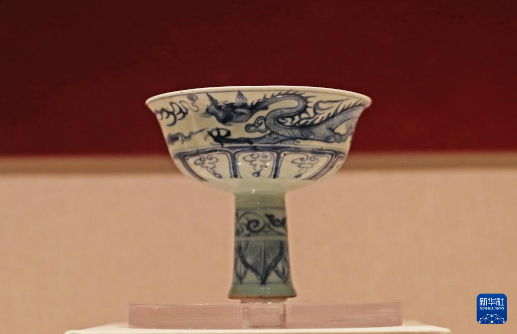 2月2日在遼寧省博物館拍攝的青花云龍紋高足杯。新華社記者 楊青 攝pagebreak