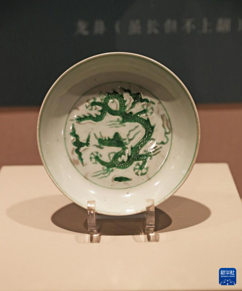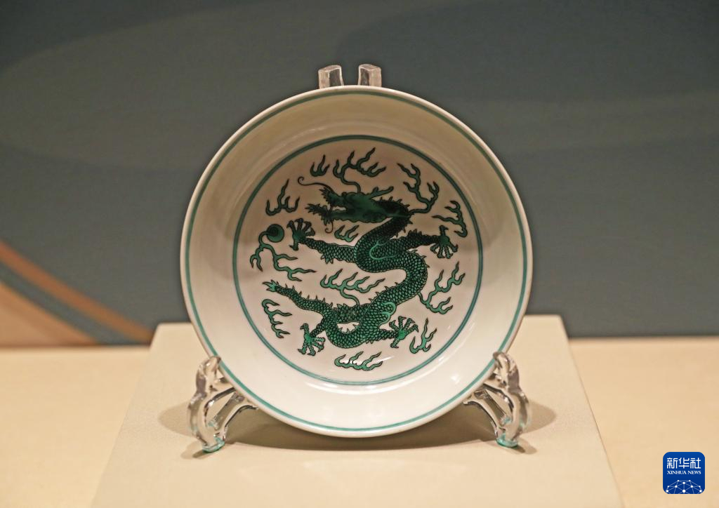 2月2日在遼寧省博物館拍攝的雕填綠彩龍紋盤。新華社記者 楊青 攝pagebreak