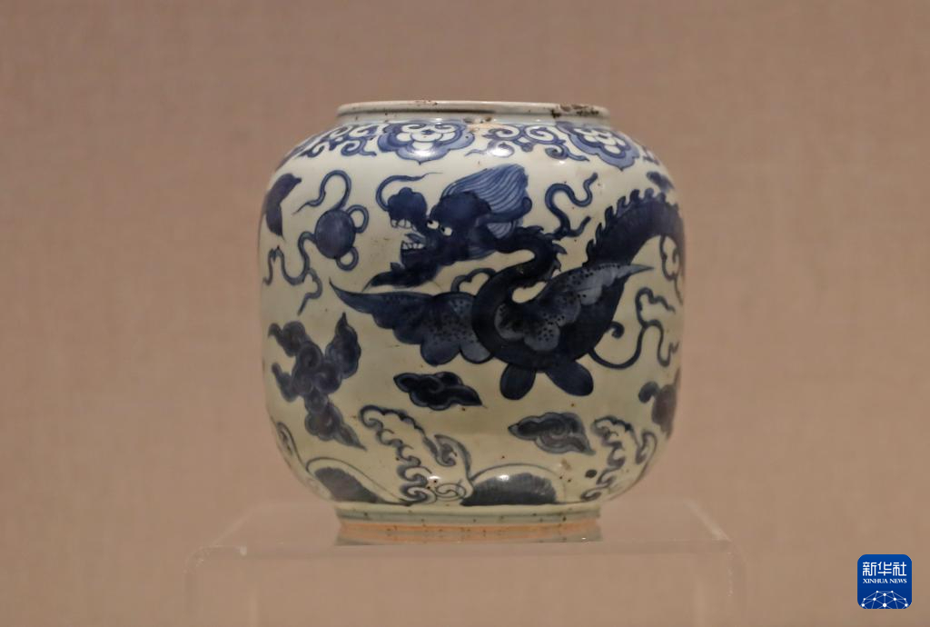 2月2日在遼寧省博物館拍攝的青花飛龍紋罐。新華社記者 楊青 攝pagebreak
