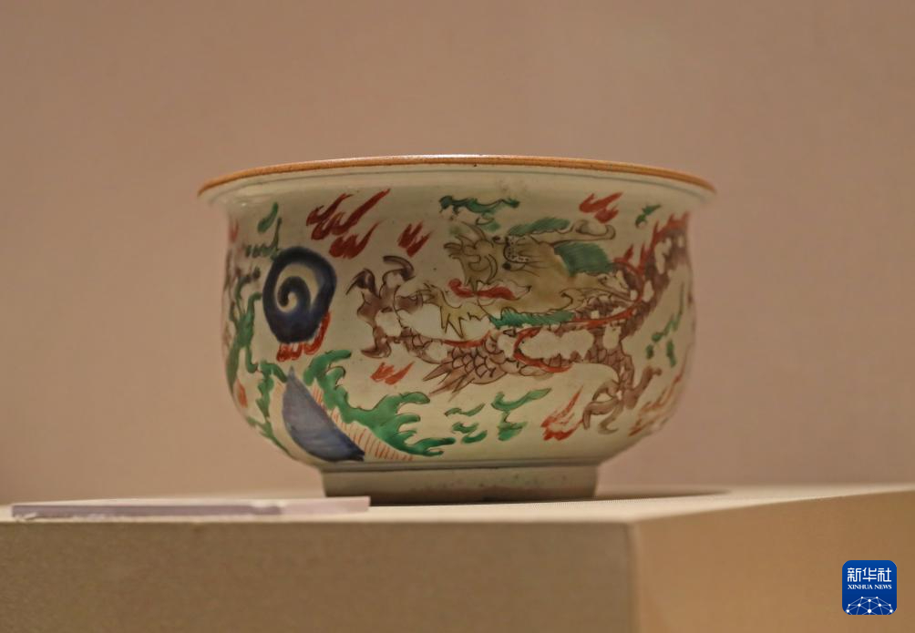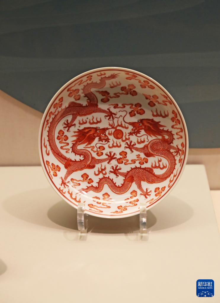 2月2日在遼寧省博物館拍攝的抹紅云龍紋盤。新華社記者 楊青 攝pagebreak