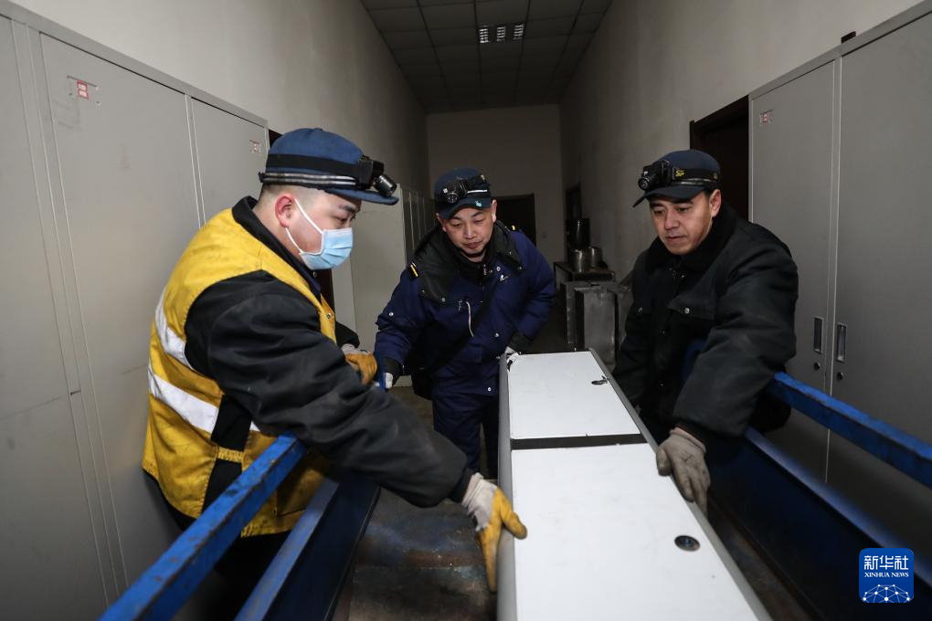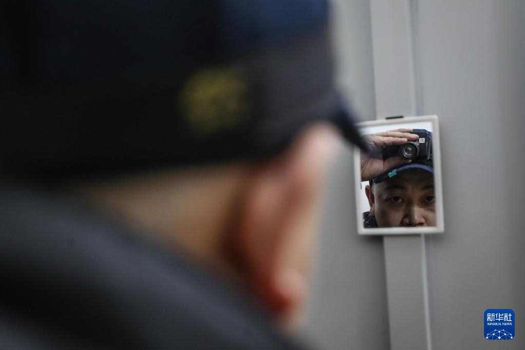 2月4日,田鶴整理頭燈,準備前往整備庫進行檢修工作。新華社記者 潘昱龍 攝pagebreak