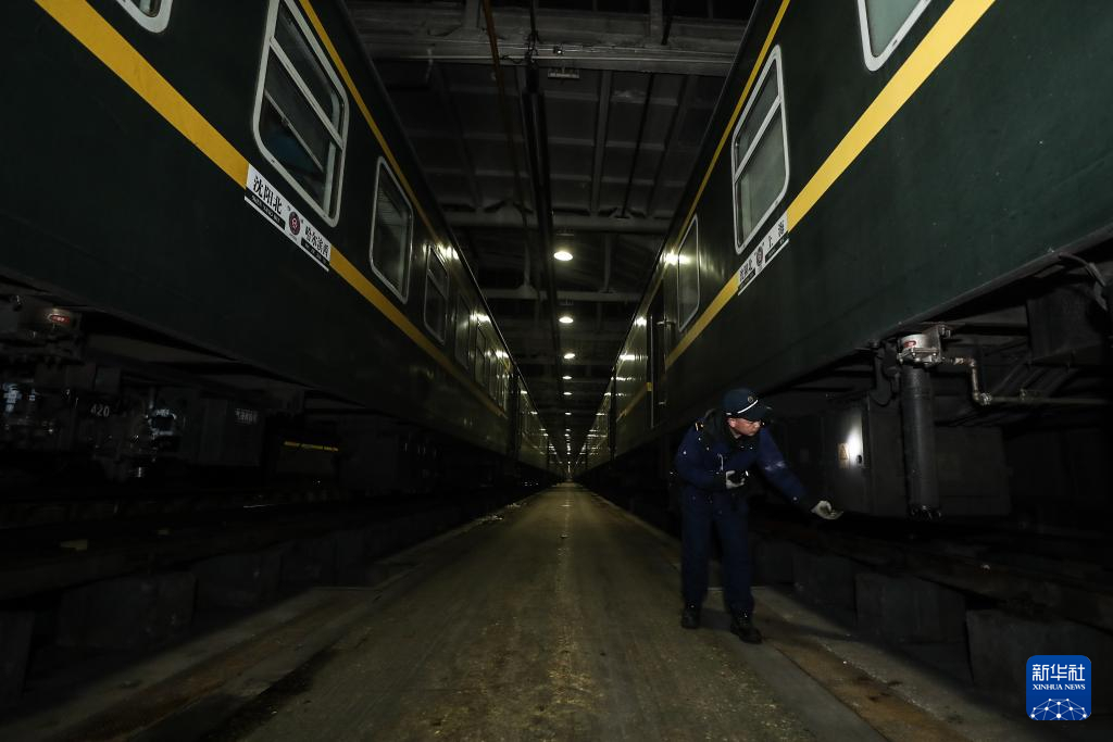 春運期間,除了嚴寒,最大的挑戰是比平時更繁重的檢修任務。田鶴所在班組每晚要對5趟列車進行檢修作業,從20點到第二天5點,在9個小時內要檢修近百輛客車。這些列車有的要經受嚴寒考驗抵達黑龍江漠河,有的要跨越半個中國前往青海西寧。像田鶴這樣的檢修人員,沈陽車輛段有近1500名,他們在寒夜中檢修列車,保障乘客春運期間安全、溫暖出行。pagebreak