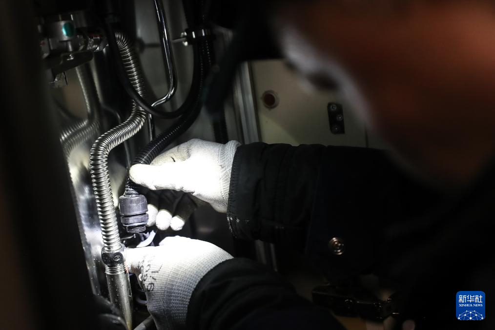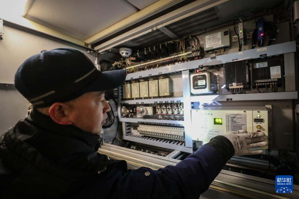 2月5日,田鶴在一列普速列車內進行檢修工作。新華社記者 潘昱龍 攝pagebreak