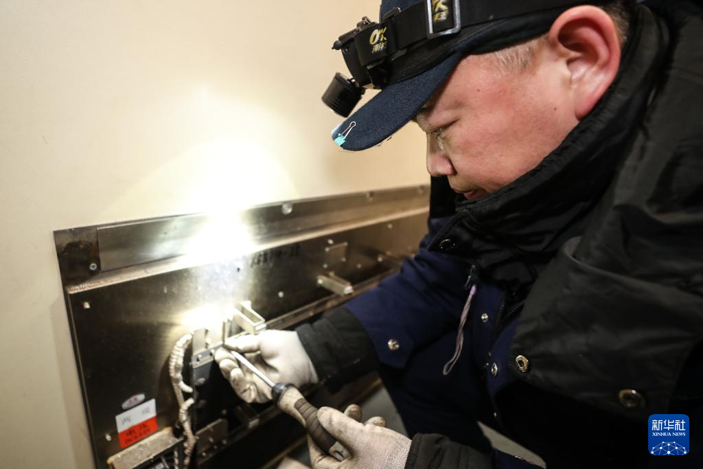 2月5日,田鶴對一列普速列車內的電暖器進行維修。新華社記者 潘昱龍 攝pagebreak